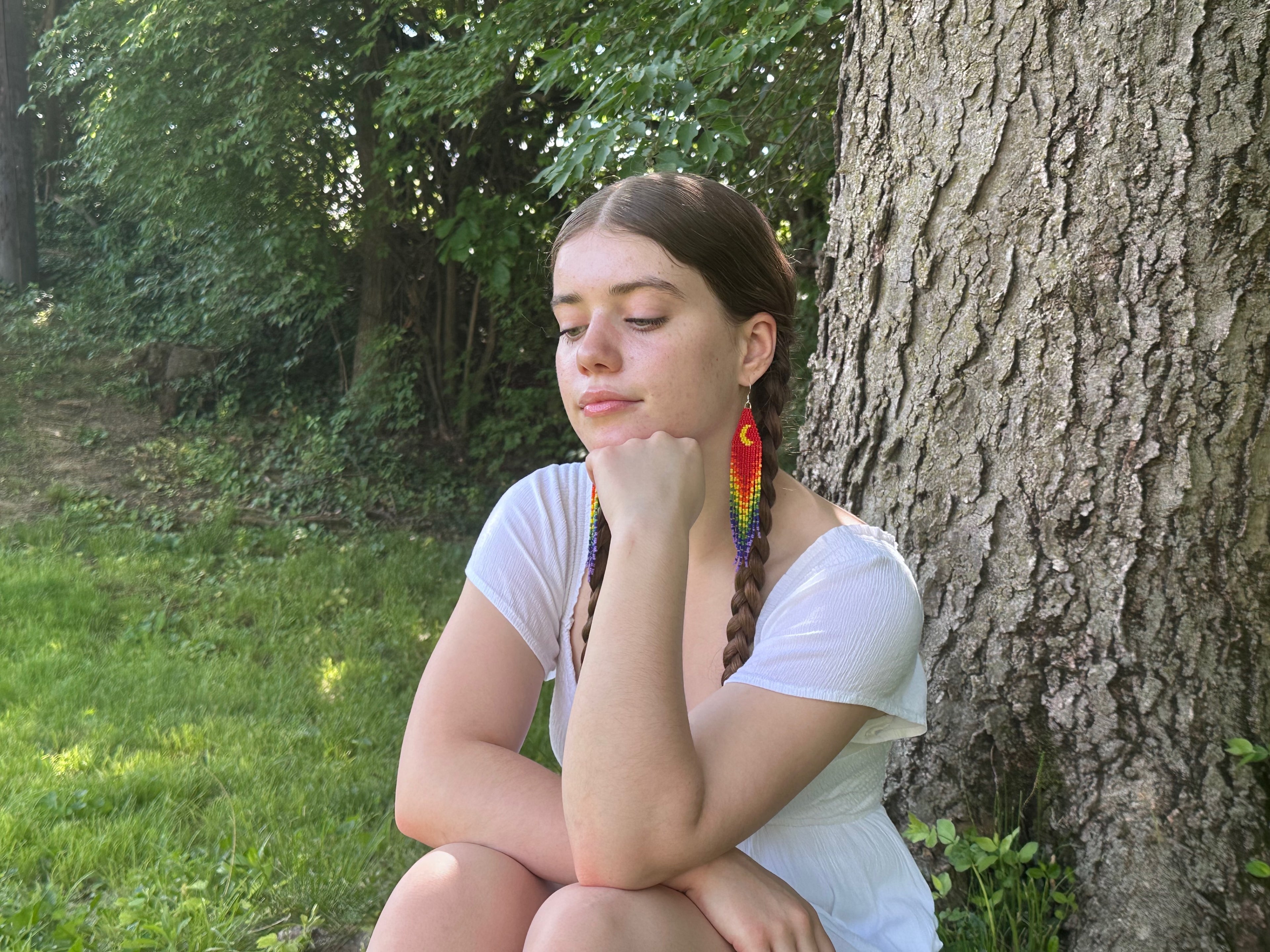 Oskē-wvske Oskē Entacv (Rainbow Rainmist) Beaded Loop Earrings