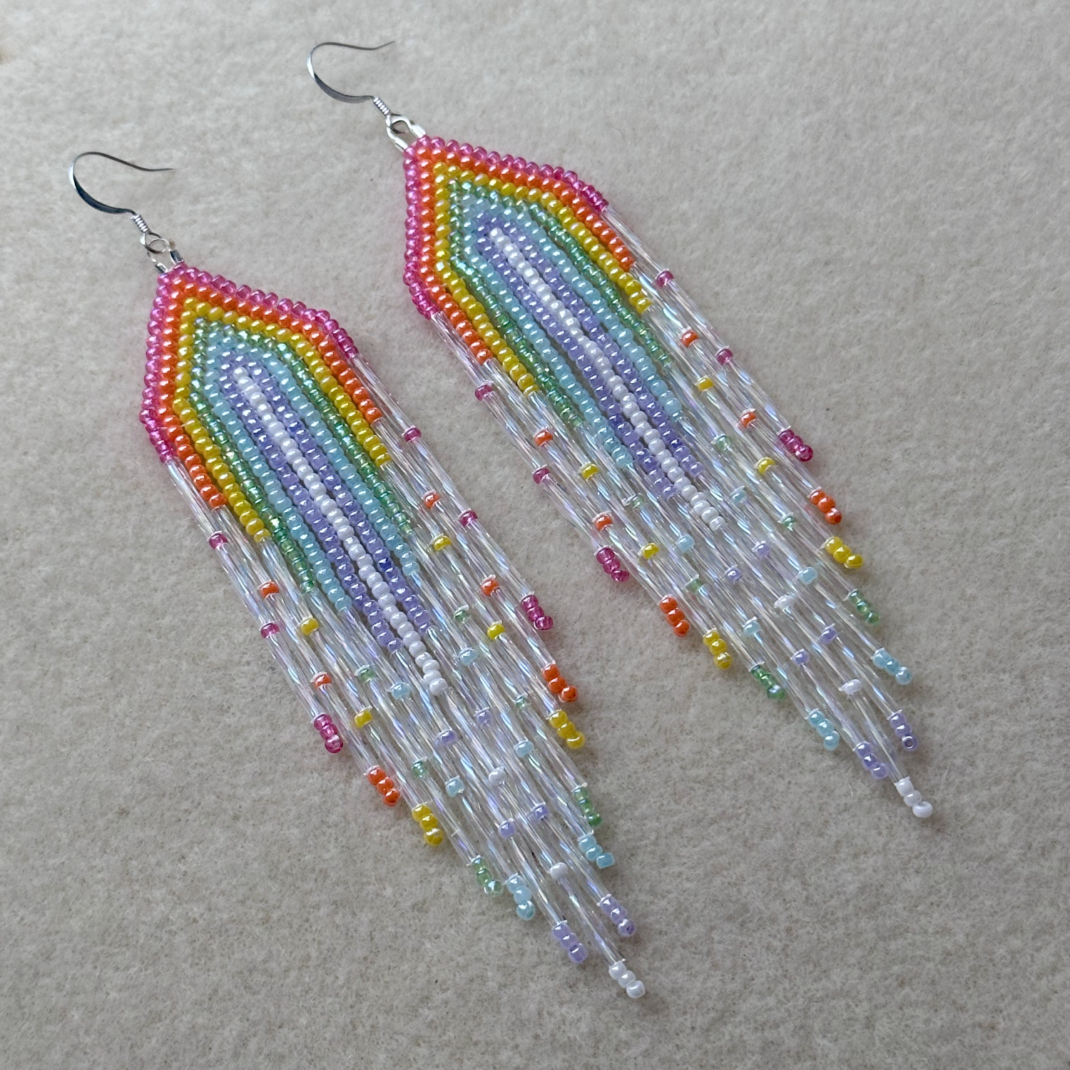 Kocecvmpv Vlotkot Oskē Entacv (Rainbow Shooting Star) Brick Stitch Fringe Beaded Earrings