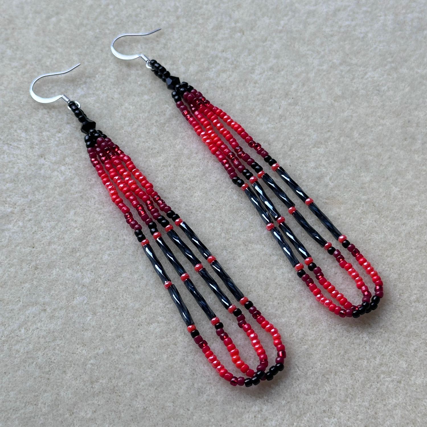 Oskē-Wvske Catē (Red Rainmist) Beaded Loop Earrings